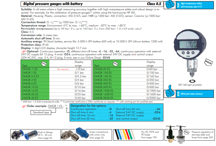 Manometre digitale 0 -1600 bar, Standard