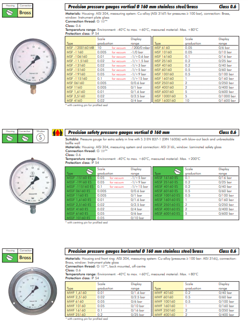 Manometru de precizie, 160mm, 0 - 60 bar